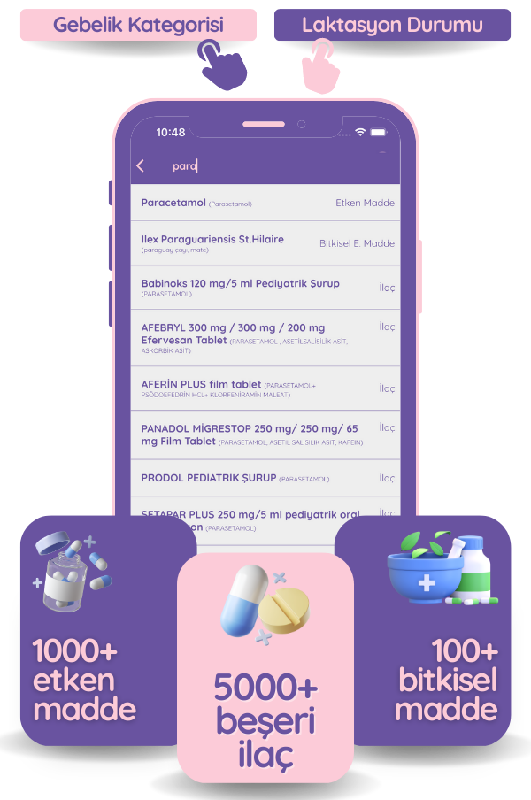 Gebelik Kategorisi uygulaması ile etken maddelere ve ilaçlara ait gebelik ve laktasyon risk durumlarını saniyeler içerisinde sorgulayabilirsiniz.